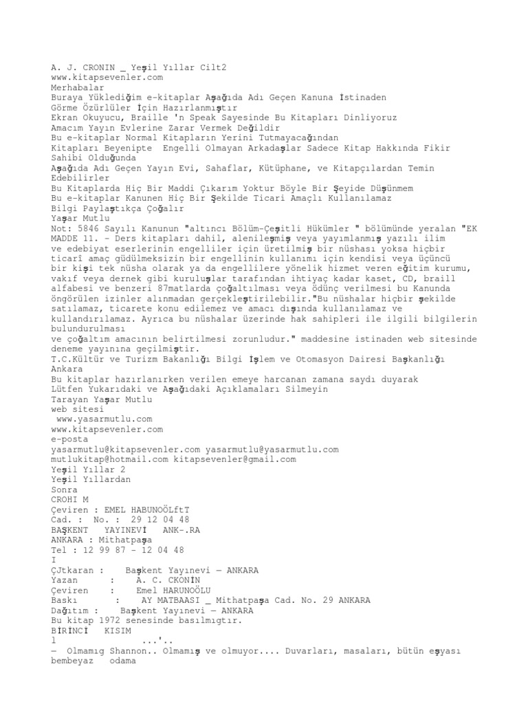 a j cronin yesil yillar cilt2 pdf
