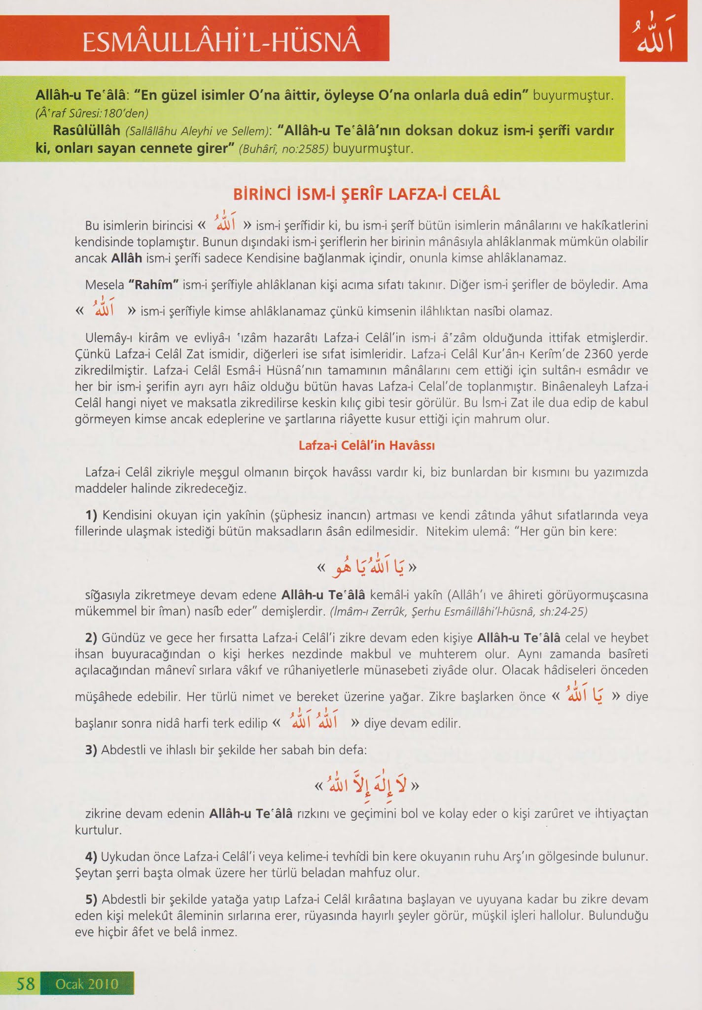 lafza i celal isminin zikri islam