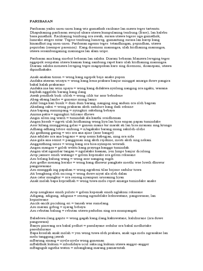 pepatah jawa paribasan bebasan dan