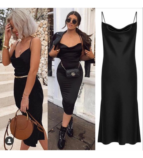 capraz askili kalem elbise siyah