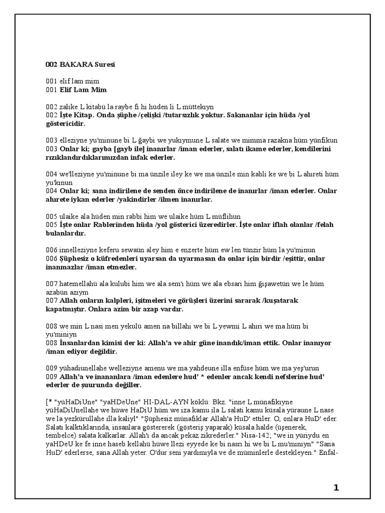 bakara suresi latin ve arapca okunusu