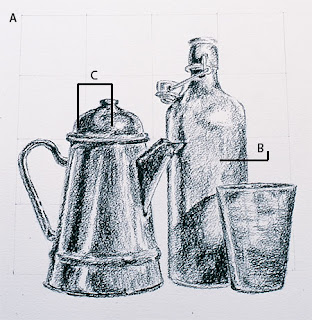sise ve bardak karakalem resim