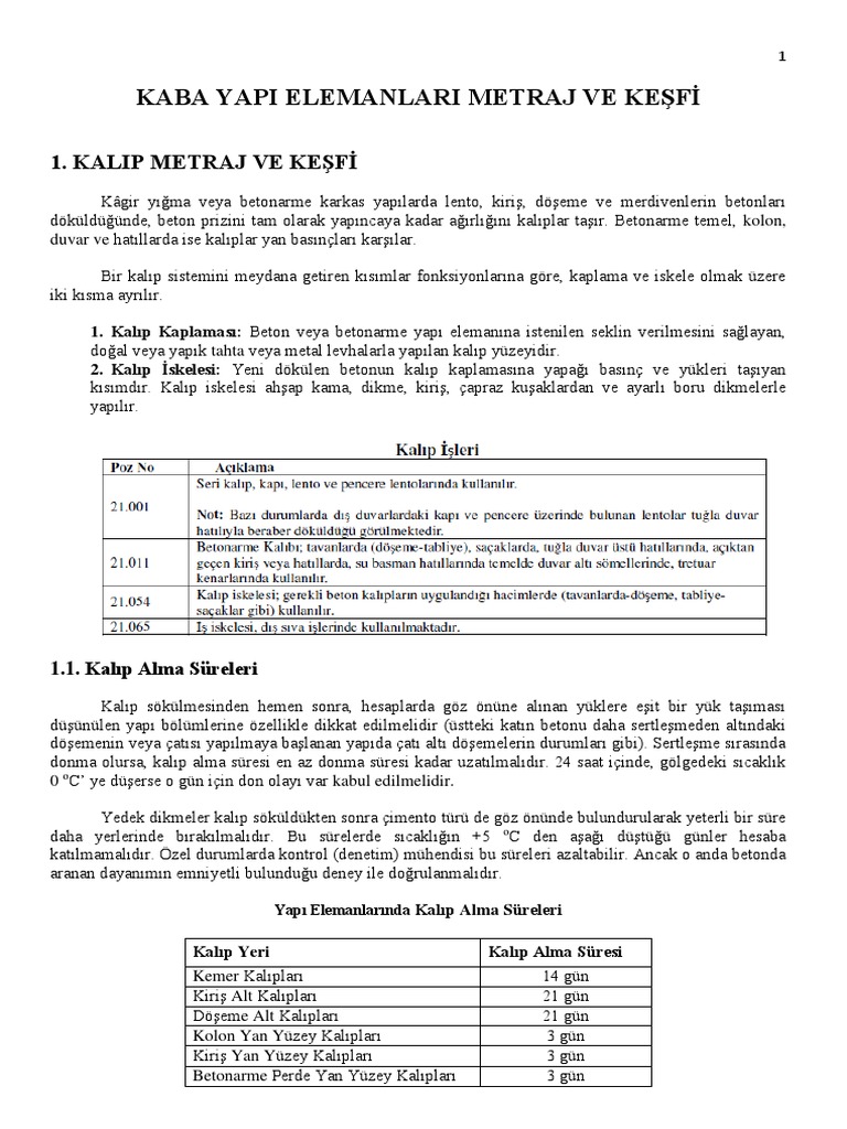 kalip beton metraji ve kesfi