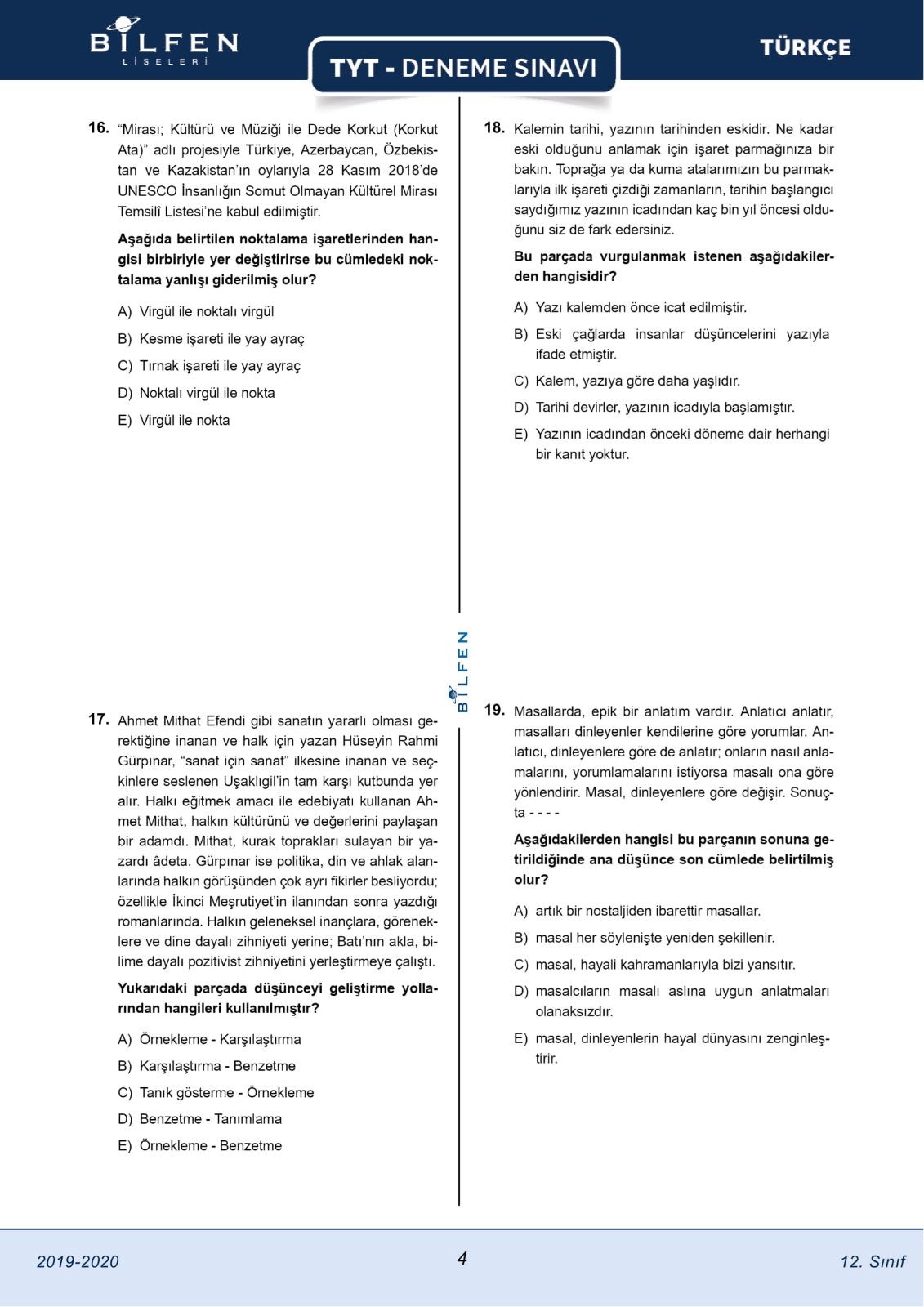 bilfen tyt deneme sinavi ntv