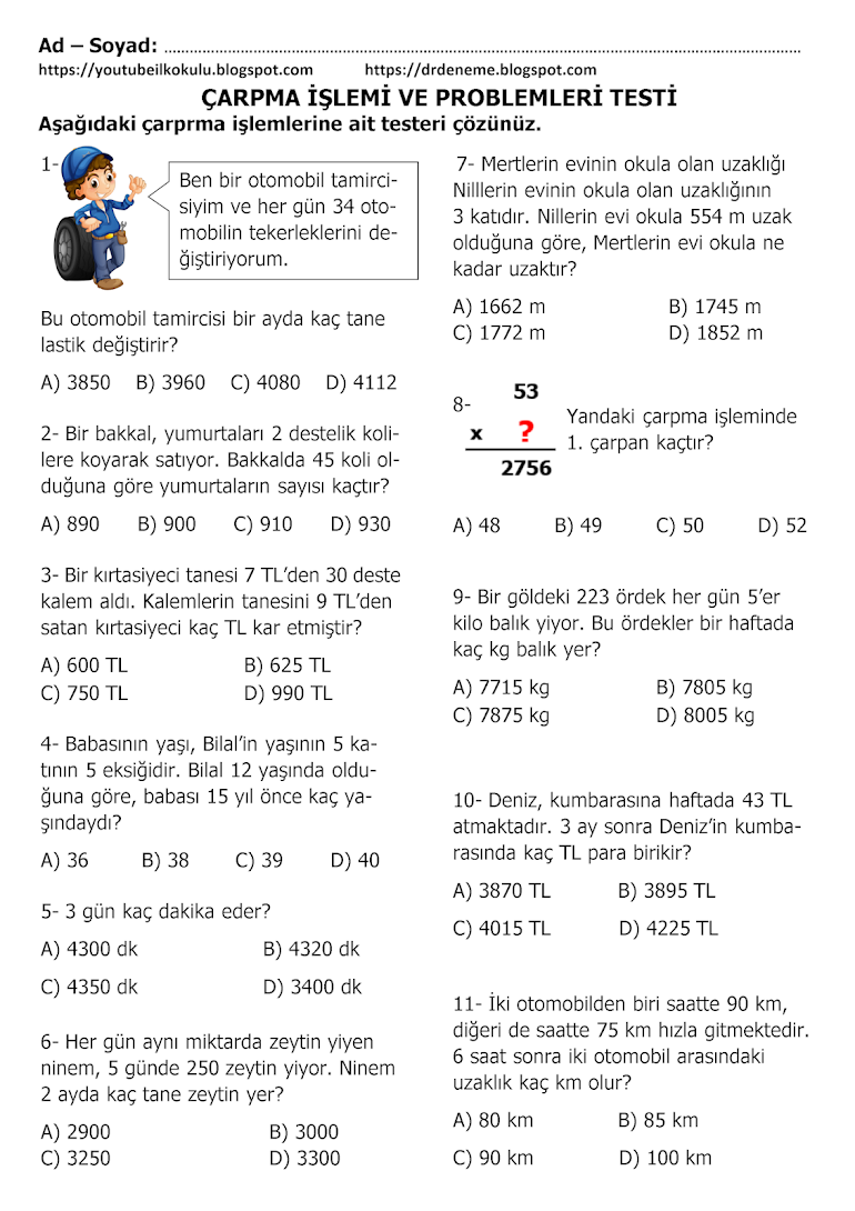 3 sinif duzeyinde problemler 15 tatil