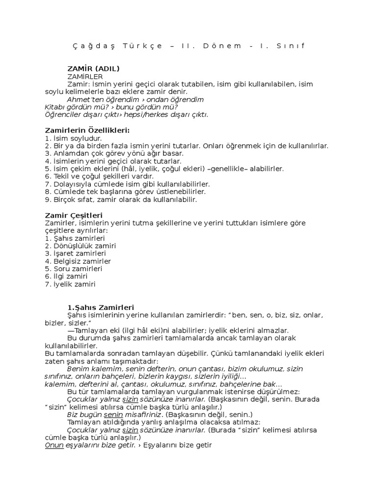 zamir adil nedir zamir turleri ve