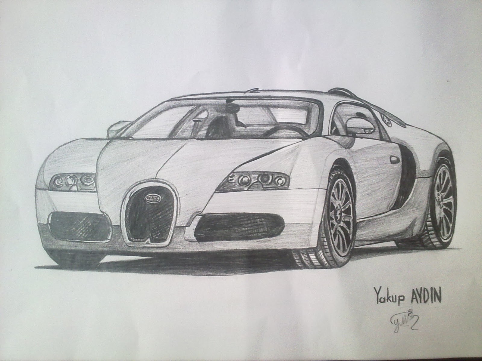 boyutlu araba lbugatti veyron kara kalem