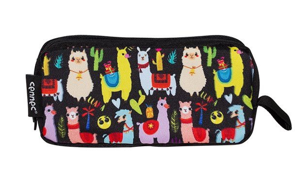 cennec baykus baskili iki bolmeli kiz cocuk kalem cantasi siyah