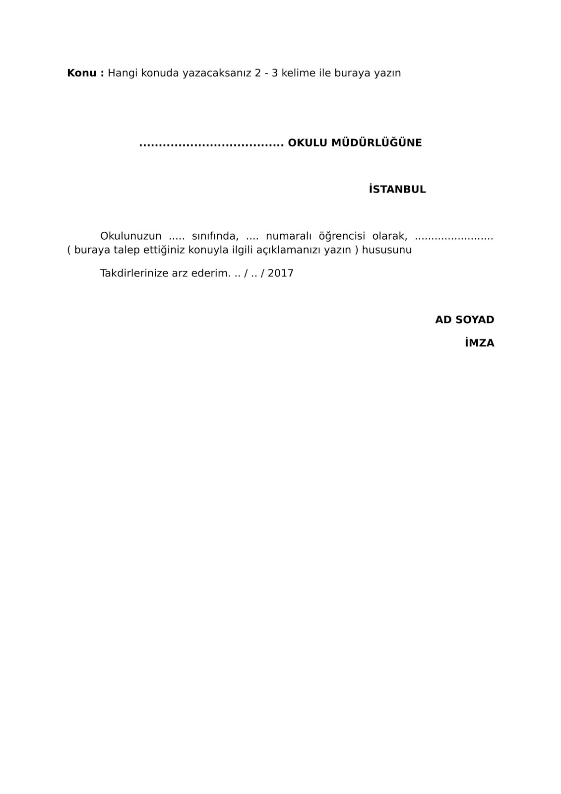 kisa dilekce ornegi resmi ve basit